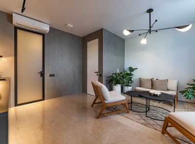 Аренда 7-комнатного Таунхауса площадью 440 кв.м в районе Живописной бухты. Участок 8 соток с ландшафтным дизайном. КП Резиденция Рублево. В доме сделан современный ремонт, полностью меблирован, установлена вся необходимая бытовая техника, панорамное остекление, в каждой комнате имеется кондиционер. Гараж на 2 м/м, 2 террасы.Планировка: 1-уровень: холл, кухня-столовая с выходом на патио и свой участок, гостиная с каминной зоной, гостевая спальня, комната свободного назначения, постирочная зона, гостевой санузел с душевой.