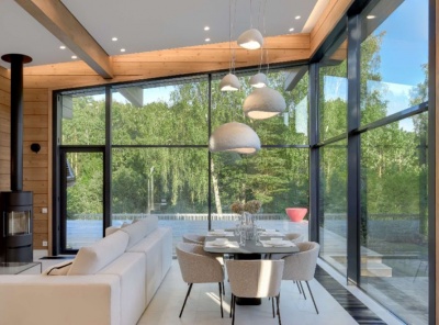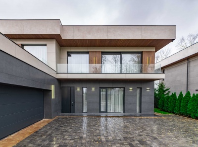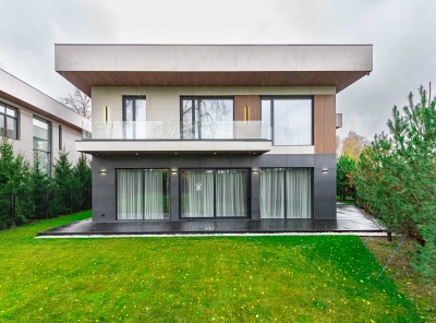 Продажа загородного дома площадью 300 кв.м. Новорижское шоссе, 23 км от МКАД. Коттеджный поселок Новорижский. Дом построен в 2 этажа в современном стиле. Продаётся новый монолитно-кирпичный дом со вторым светом, расположенный в престижном коттеджном посёлке. Дом является авторским проектом архитектора Марии Рожниковой, с уникальной архитектурой и продуманной планировкой. В гостиной установлены панорамные окна, которые являются частью стены и обеспечивают максимальное естественное освещение.