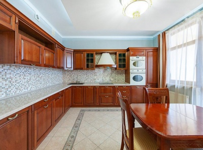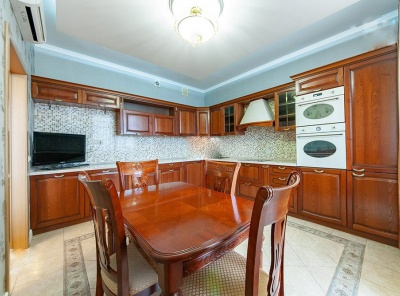 Продажа загородного дома общей площадью 720 кв.м. Новорижское шоссе, 19 км от МКАД. Коттеджный поселок Миллениум парк. Дом построен в 2 этажа из кирпича в стиле шале. Ремонт выполнен с применением высококачественных материалов. Роскошный интерьер исполнен в светлых тонах, дополнен стильной мебелью и изысканными предметами декора. Имеется отдельный вход в блок для персонала. Функциональная кухня укомплектована встроенной современной техникой. Гостиная с дровяным камином. Через гостиную предусмотрен выход на летнюю террасу.