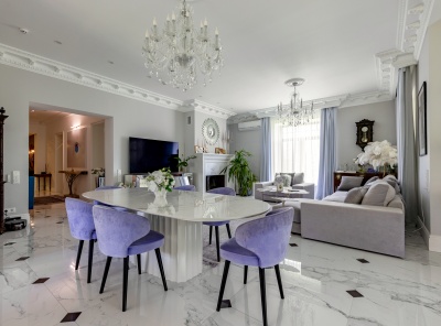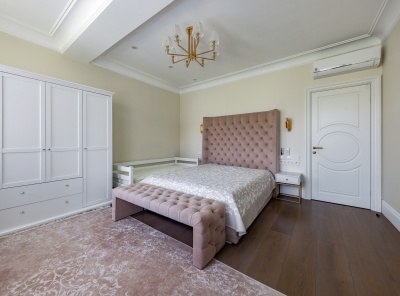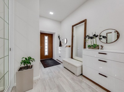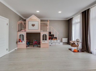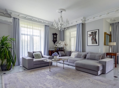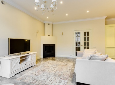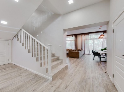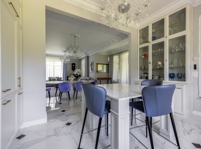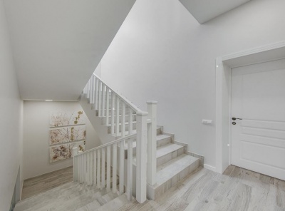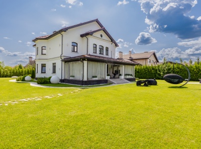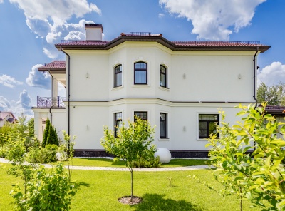 Продажа загородного дома площадью 550 кв.м. Новорижское шоссе, 23 км от МКАД. Коттеджный поселок Монтевиль. Дом построен в 2 этажа. Сделана дизайнерская отделка под ключ. Этот светлый элегантный дом сочетает в себе сдержанную классическую архитектуру и продуманную функциональность. Фасад выполнен в лаконичной белой отделке с контрастными темно-коричневыми акцентами — крышей, окнами и дверями. Четкие линии, симметричные формы и благородная цветовая гамма придают дому респектабельный и стильный облик.