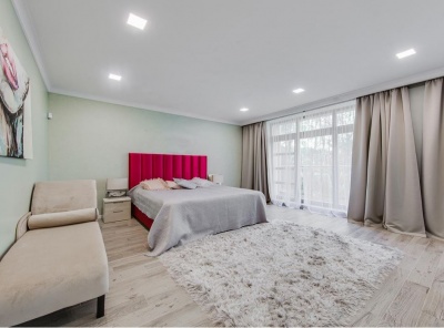 Продажа загородного дома площадью 1700 кв. м. Новорижское шоссе, 9 км. от МКАД. Дом построен в 2 этажа под чистовую отделку White box. Ультрасовременная архитектура, дизайнерская подсветка фасада, панорамное остекление, плоская кровля, высокие потолки, лифт, спа-зона с бассейном, сауной и хаммамом. Просторный участок 46 соток с реликтовым лесом и возможностью увеличения до нескольких га. Имеется 2 гаража на 8 м/м.
