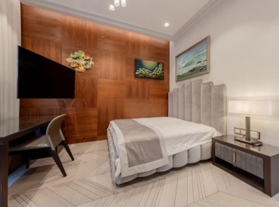 Аренда 2-комнатной квартиры общей площадью 45 кв.м. Новорижское шоссе 14 км от МКАД. Коттеджный поселок Павлово-2. Квартира полностью меблирована. Оборудована новой бытовой техникой от лучших европейских производителей, кондиционеры во всех комнатах. Современный сдержанный дизайн. Окна выходят на тихий бульвар.Планировка: кухня-столовая-гостиная, спальня, с/у, гардеробная.
