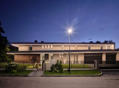 Продажа нового элитного дома в стиле минимализм общей площадью 1238 кв.м. Новорижское шоссе, 9 км от МКАД. Коттеджный поселок Никольская Слобода. Дом спроектирован в современном минималистичном стиле, имеет четко выраженные прямолинейные формы, большие консольные выносы кровли, подчеркнутые контрастной отделкой белыми гладкими панелями. Основной фасад отделан фактурной серой декоративной штукатуркой и премиальными фасадными панелями Millboard. В темное время суток предусмотрена мягкая подсветка фасадов дома и освещение въездной группы.