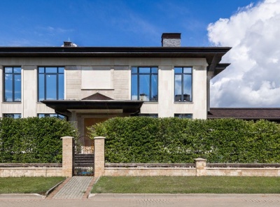 Продажа загородного дома общей площадью 522 кв.м. Новорижское шоссе, 18 км от МКАД. Коттеджный поселок Ренессанс Парк. Дом построен в 2 этажа. Фасад здания в неоклассическом стиле облицован дагестанским песчанником и мрамором и декорирован гранитом по цоколю, установлены стеклопакеты с алюминиевым профилем. В резиденции без отделки разместили 4 спальни, гостиную-каминную со вторым светом, кухню, столовую, кабинет и игровую. В контуре дома предусмотрены блок для персонала, гараж на 2 машины и гараж для мототехники.