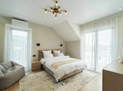 Продажа загородного дома площадью 330 кв. м. Новорижское шоссе, 23 км. от МКАД. Коттеджный поселок Новорижский. Построен в 2 этажа, под ключ. Дом оснащен всеми необходимыми коммуникациями и удобствами для комфортной жизни. Лаконичный и современный интерьер исполнен в светлых тонах, что создает атмосферу уюта и гармонии. Стильная мебель и качественные отделочные материалы подчеркивают элегантность и функциональность пространства.
