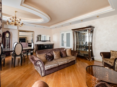 Аренда 4-комнатной квартиры площадью 150 кв.м. с дизайнерским ремонтом. Метро Университет, 1 минута пешком. Ломоносовский проспект, дом 25к3. ЖК Доминион. Квартира частично мебелирована. Кухня оборудована современной бытовой техникой. Санузлы оборудованы качественной европейской сантехникой. Теплая элегантная атмосфера. Ремонт выполнен из высококачественных и экологических материалов. Светлые, ненавязчивые тона. Одно машино-место входит в стоимость.