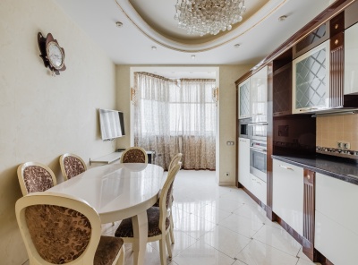 Аренда 3-комнатной квартиры площадью 132 кв.м. Метро Университет, 1 минута пешком. Ломоносовский пр-т 25к2. ЖК Доминион. Квартира полностью меблирована. Интерьер в стиле неоклассика. Кухня оснащена всей необходимой современной бытовой техникой. Светлая и теплая атмосфера. Окна с видом на город и тихий двор.Планировка: кухня, гостиная, мастер спальня со своим с/у, гостевая спальня, гардеробная, 2 с/у.