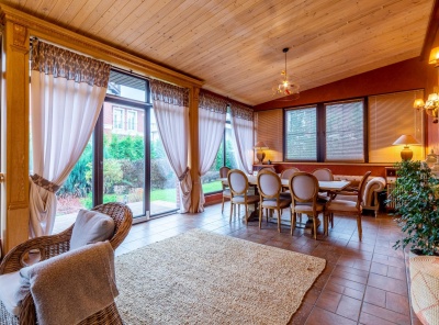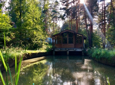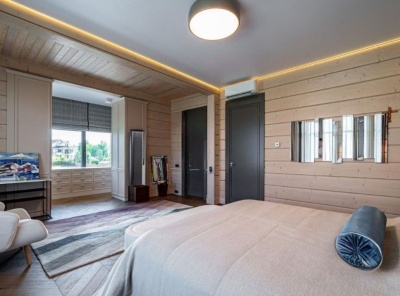 Продажа загородного дома площадью 411 кв.м. Новорижское шоссе, 20 км от МКАД. Коттеджный поселок Павловский Лес. Коттедж построен из канадского кедра в 2 этажа. К дому подведены все коммуникации. На участке 50 соток есть просторный гостевой дом с двумя спальнями и тёплым гаражом на 2 м/м. Собственный пруд с банным комплексом.