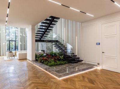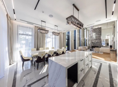Продажа загородного дома общей площадью 1172 кв.м. Новорижское шоссе, 23 км от МКАД. Коттеджный поселок Агаларов Эстейт. Особняк построен в 3 этажа. Выполнена дизайнерская отделка под ключ с мебелью. Современное исполнение француского особняка с настоящей продуманно планировкой и наполнением. Высокие потолки каждого этажа добавляют объема в просторные комнаты, а панорамные окна в пол и расположение на солнечной южной стороне заливают пространство светом.