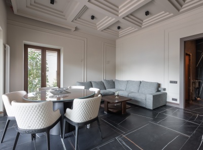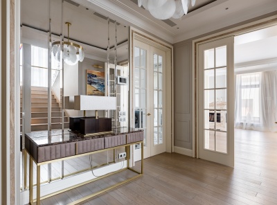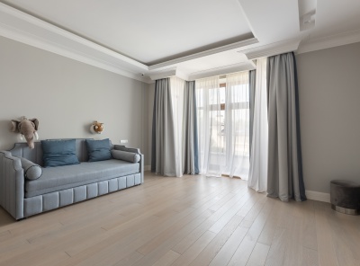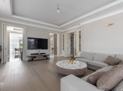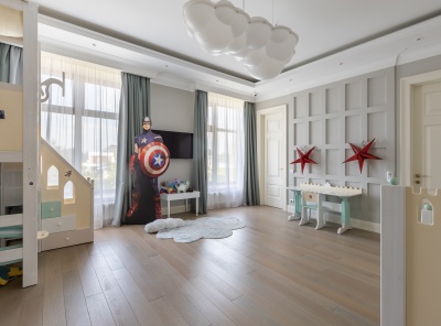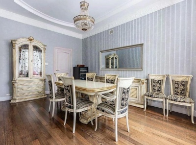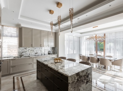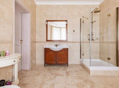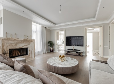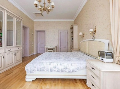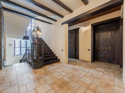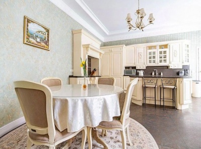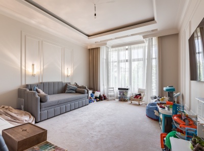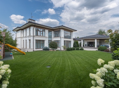 Продажа загородного дома общей площадью 500 кв.м. Новорижское шоссе, 18 км от МКАД. Коттеджный поселок Ренессанс Парк. Дом построен в 2 этажа, под ключ, со стильной отделкой и полной обстановкой в современной классике по авторскому дизайн-проекту. Мебель подобрана под заказ, европейских и американских брендов. В отдельной постройке – гараж на 3 а/м, кладовое помещение - надо гаражом квартира для персонала на 2 спальни, гостиная, с/у, котельная. Также спа-зона с сауной, с/у, комнатой отдыха и выходом на открытую террасу.