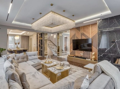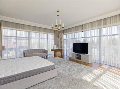 Продажа загородного дома общей площадью 2000кв.м. Новорижское шоссе, 20 км от МКАД. Коттеджный поселок Агаларов Эстейт. Дом построен в 4 уровня из кирпича. Выполнена отделка под ключ в стиле американской классики с элементами Ар-Деко. Есть лифт на все 4 уровня. В отделке использованы натуральные и редкие материалы, мебель из авторских коллекций Италии, Франции и Германии, премиальная профессиональная техника. Никакого керамогранита, везде мрамор. Приточно-вытяжная система вентиляции с центральным кондиционированием.