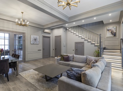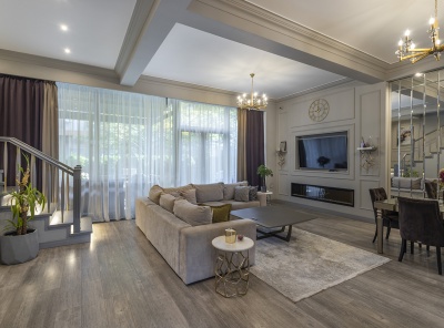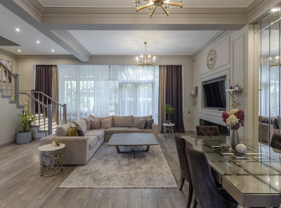 Продажа таунхауса площадью 373 кв. м. Новорижское шоссе, 16 км. от МКАД. Коттеджный поселок Кристалл Истра. Таунхаус выполнен с использованием современных архитектурных и инженерных решений: внешние и внутренние стены выполнены из керамического блока Porotherm 25 с железобетонными перекрытиями, утепленная кровля покрыта гибкой черепицей, фасад и цоколь выполнены из клинкерной плитки с декоративными молдингами.