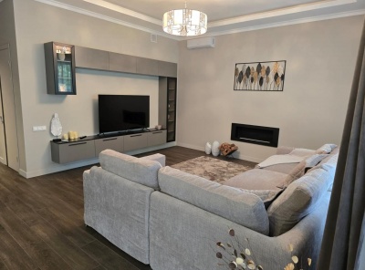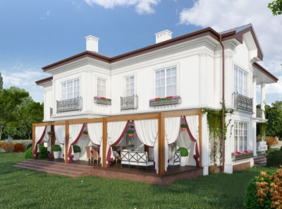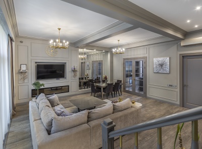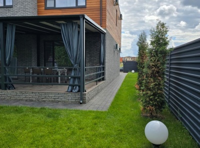 Продажа загородного дома площадью 400кв.м. Новорижское шоссе, 23 км от МКАД. Коттеджный посёлок Новорижский. Дом построен в Английском архитектурном стиле. Лаконичный интерьер исполнен в светлых тонах и дополнен стильной мебелью. Есть все необходимое для проживания большой семьи. На участке 12 соток выполнен ландшафтный дизайн и расположен гостевой дом. Парковка на 2 м/м с навесом.