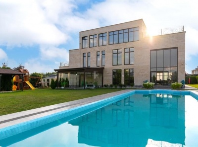 Продажа загородного дома общей площадью 2300 кв.м. Рублёво-Успенское шоссе, 10 км от МКАД. Коттеджный поселок ParkVille Жуковка (Парк Вилль). Участок 50 сотки. Дом построен в 4 уровня по индивидуальному проекту полностью оборудован и меблирован. В отделке использован натуральный камень и ценные породы дерева. Сплошное панорамное остекление открывает вид на ухоженный участок с превосходным ландшафтным дизайном. Для хозяев и их гостей оборудована большая SPA-зона, бассейн, тренажёрный зал, сауна, кинотеатр и бильярдная.