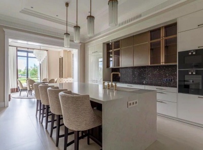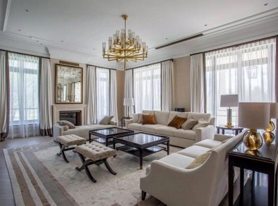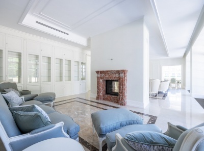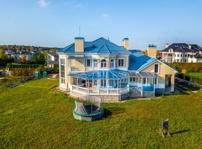 Продажа загородного дома общей площадью 1200 кв.м. Коттеджный поселок Мэдисон Парк. Новорижское шоссе, 24 км от МКАД. Двухэтажная усадьба построена по индивидуальному проекту в английском стиле. Панорамные окна наполняют просторные помещения светом. Выполнена высококачественная отделка под ключ с мебелью Angello Capellini. Много мрамора, мозайка, натуральный паркет, деревянные окна. Установлена система приточно-вытчжной вентиляции с центральным кондиционированием. Современная планировка и удобства для проживания семьи с персоналом и гостями.