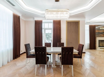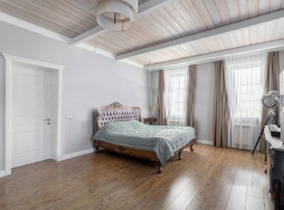 Продажа загородного дома общей площадью 490 кв.м. Новорижское шоссе, 19 км от МКАД. Коттеджный поселок Ренесанс Парк. Дом построен в 2 этажа. Под ключ. В классическом стиле. Расположен на участке 23 сотки в тихой и уединённой части посёлка.Планировка1 этаж - гостиная с камином и выходом на террасу, кухня-столовая, спальня, с/у, постирочная, гараж на 2 м/м над которым располагается квартира для персонала с 2 спальнями,2 этаж - 3 спальни с с/у и гардеробными.