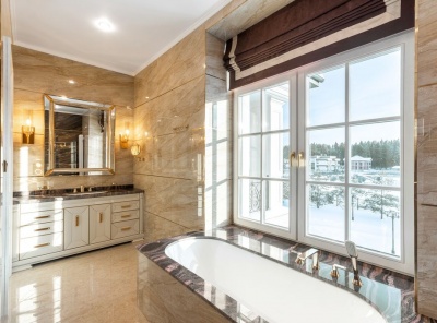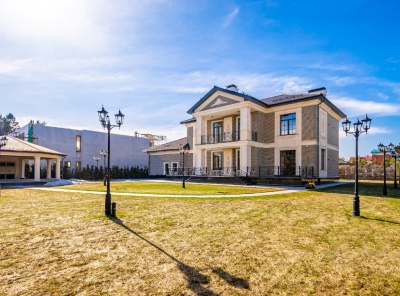 Продажа загородного дома общей площадью 911 кв.м. Новорижское шоссе, 19 км от МКАД. Коттеджный поселок Миллениум Парк. Коттедж построен в 2 этажа в классическом стиле. В доме установлена приточно-вытяжная система вентиляции с увлажнением и кондиционированием. Участок 18 соток. Отдельностоящий гараж с квартирой для персонала площадью 155 кв.м.