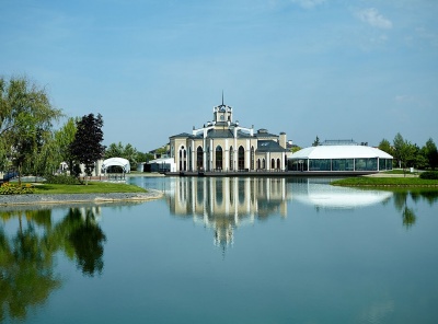Продажа загородного дома общей площадью 1000 кв. м. Новорижское шоссе, 9 км от МКАД. Коттеджный поселок Никольская слобода. На участке 1 Га располагается гараж на 10 м/м с квартирой для персонала (10 комнат с санузлами, прачечная, кухня) и блоком для водителя (кухня, с/у). Также на участке дом для охраны, большой пруд с террасой-барбекю, маленький пруд с японским садом, водопад, гостевой дом (русская баня на дровах, гостиная с камином и выходом на террасу, массажная, с/у, кухня).