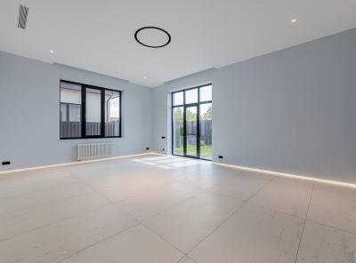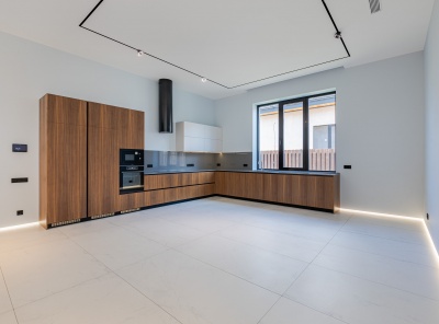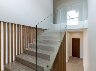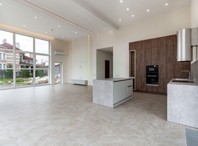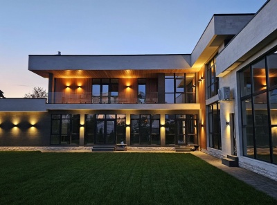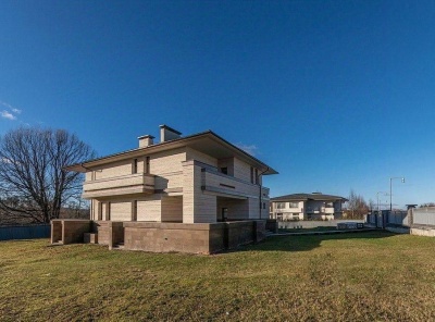 Продажа нового загородного дома общей площадью 640 кв. м. Новорижское шоссе, 23 км от МКАД. Коттеджный поселок Новорижский. Дом построен в 2 этажа по современному европейскому проекту в стиле Хайтек с панорамным остеклением в лучшей части поселка. Выполнена дизайнерская отделка под ключ. Фасад из натурального камня с элементами массива лиственницы. Интерьер выполнен в современном стиле. Высота потолков: 1 этаж — 4,3 м, 2 этаж — 3.3 м. Участок 14 соток правильной формы в 2 мин от центрального озера. Все коммуникации центральные.
