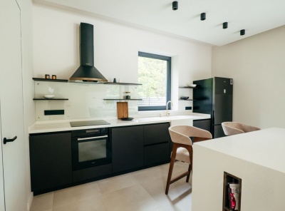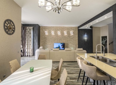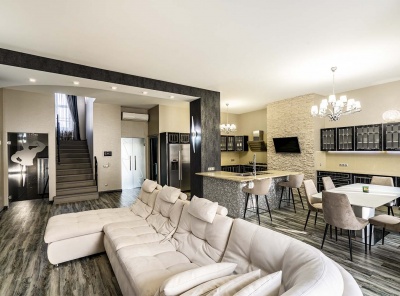 Продажа загородного дома общей площадью 485 кв.м. Коттеджный поселок Мозжинка. Новорижское шоссе, 38 км от МКАД. Дом построен в 2 этажа. Сдается с чистовой отделкой, полностью укомлектованный премиальной мебелью и бытовой техникой. Коммуникации: теплые водяные полы, выполнена разводка электричества, проведен газ и организована газовая котельная с оборудованием Baxi. Предусмотрена система резервного отопления. Проведены трассы под кондиционеры. Предусмотрено место для хаммама.