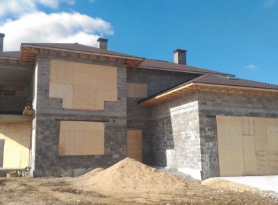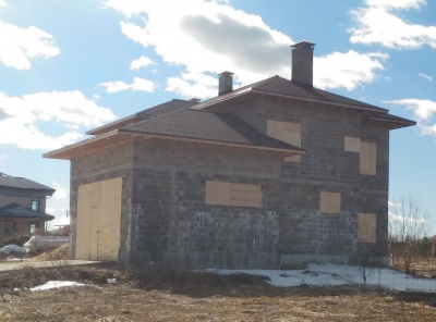 Продажа загородного коттеджа площадью 275 кв.м. Новорижское шоссе, 33 км от МКАД. Коттеджный поселок Люкс-Проект. Коттедж построен в 2 этажа. Стены - бетонные блоки (пескобетон). Дом стоит на качественном, монолитном бетонном фундаменте - на 132 сваях диаметром 60-мм, вбитых в землю на глубину 2,5 м, внутри свай вязанная арматура, залитая бетоном, подвала нет, вся конструкция залита бетоном одномоментно. Дом заведен под крышу. Черновая отделка стен. Архитектурный проект дома передается. Участок 10 соток.