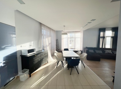 Аренда 4-комнатной квартиры площадью 152 кв.м. Метро Сокол, 12 минут пешком. Чапаевский переулок, дом 3. ЖК Триумф Палас. Светлая, уютная, тихая квартира с отделкой в современном стиле, которая выполнена из высококачественных экологичных материалов. Полы - массив дуба. Мебель - Италия. Деревянные окна (Германия). На кухне гарнитур со встроенными шкафами, есть вся необходимая бытовая техника (Miele, Kuppersbusch). Во всех комнатах блоки регулирования системы кондиционирования. Вид в тихий двор. Имеется 1 м/м.