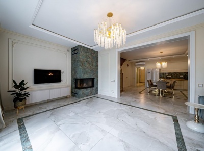 Продажа загородного дома площадью 432 кв.м. на участке площадью 10 соток. Коттеджный поселок Русская деревня. Новорижское шоссе, 24 км от МКАД. Стильный дом с отделкой «под ключ», оборудованный дизайнерской мебелью премиум класса, эксклюзивной сантехникой и современной бытовой техникой выполнен в 2 этажа. Участок 10 соток. Коттедж располагается в тихой части поселка.Уникальный проект выполнен в современном стиле. Тщательно продуманы все детали для комфортного проживания. В строительстве и отделке использованы натуральные материалы.
