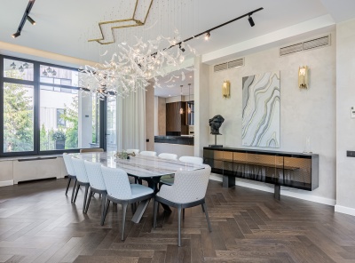 Продажа загородного дома общей площадью 420 кв.м. Коттеджный поселок Гринфилд. Новорижское шоссе, 23 км от МКАД. Дом построен в 2 этажа из кирпича. Грамотная планировка и долговечная отделка. Полностью меблирован и оборудован всей необходимой техникой. Во всем доме установлено климатическое оборудование - Daikin.Вся поверхность пола закрыта плиткой и подогревается теплым полом от котла. На участке 21 сотка выполнен ландшафтный дизайн с дренажем и освещением. Так же расположен банный блок и блок для персонала, общей площадью 120 кв.м.