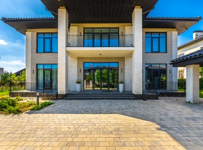 Продажа загородного дома площадью 450 кв.м. Коттеджный поселок Гринфилд. Новорижское шоссе, 23 км от МКАД. Коттедж построен в 2 этажа. Полностью готов к проживанию. Отделка в современном стиле. Встроенная кухня с бытовой техникой. Панорамное остекление. Просторный участок 23 сотки с ландшафтным дизайном. На участке расположен отдельно стоящий домик с квартирой для персонала, сауной и беседкой для барбекю. Так же есть гараж на 2 авто.