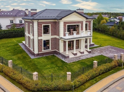 Продажа загородного дома общей площадью 430 кв.м. Новорижское шоссе, 19 км от МКАД. Коттеджный поселок Миллениум Парк. Дом построен в 2 этажа. Выполнена дизайнерская отделка под ключ. В отделке использованы премиальные материалы мрамор и паркетная доска. Зеленый участок на солнечной стороне, недалеко от центрального парка с озером. Площадь участка 17.5 соток.Планировка:1 этаж - кухня-столовая, гостиная c камином и выходом на 2 веранды, гостевой с/у, гараж на 2 автомобиля, гардеробная, котельная.