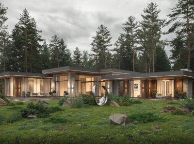 Продажа загородного дома площадью 475 кв.м. коттеджный поселок Павловы Озера. Новорижское шоссе, 18 км от МКАД. Большой одноэтажный дом в современном стиле на береговой линии озера. Фасад дома выдержан в натуральной гамме и гармонично вписывается в окружающее пространство. Панорамные окна в пол. Высокие потолки. Натуральные материалы. На фасаде применяются декоративные элементы из керамогранита, дерева и металла. Продуманная планировка. Интеграция передовых технологий и систем автоматизации. Участок 12.4 сотки.