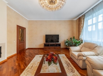 Продажа загородного дома площадью 360 кв.м. Новорижское шоссе, 23 км от МКАД. Коттеджный поселок Покровский. Дом построен в 3 этажа из кирпича в современном стиле. Интерьер выполнен в классическом стиле. Кухня Италия, авторские витражи. Участок 12 соток правильной формы с ландшафтным дизайном со своей скважиной и теплицей. Дом находится в лучшей локации поселка. Гараж на 2 м/м с квартирой для персонала. Все коммуникации центральные.