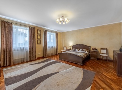 Продажа загородного дома площадью 500 кв.м. Новорижское шоссе 23 км. Коттеджный поселок Гринфилд. Коттедж построен в 2 этажа. Полностью готов к проживанию. Отделка в классическом стиле. Встроенная кухня с бытовой техникой. Панорамное остекление. Просторный участок 23 сотки с ландшафтным дизайном. На участке расположен отдельно стоящий домик с квартирой для персонала, сауной и беседкой для барбекю. Также есть гараж на 2 авто.