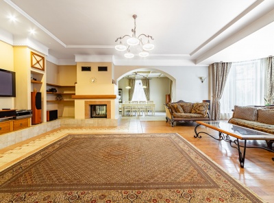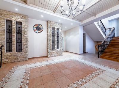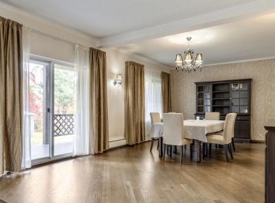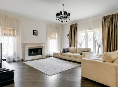 Уникальное предложение! Аренда загородного дома площадью 500 кв.м. Новорижское шоссе, 19 км от МКАД. Коттеджный поселок Балтия. Дом построен по индивидуальному проекту в 3 уровня. Высокое качество строительства. В доме выполнен ремонт в классическом стиле. Дом расположен на лесном участке с вековыми соснами площадью 40 соток. На участке находится отдельностоящий банный комплекс с бассейном и квартирой для персонала.Планировка:1 этаж - прихожая с гардеробной, кухня, столовая, гостиная с камином, кабинет, с/у, котельная, гараж на 2 авто.