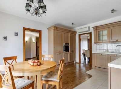 Аренда 7-комнатного 4-уровневого таунхауса площадью 510 кв.м. Метро Крылатское, 5 минут транспортом. Улица Осенняя, дом 25к7. ЖК Сосновка. Таунхаус полностью меблирован и укомплектован всей необходимой бытовой техникой от ведущих мировых производителей. В квартире выполнен дизайнерский ремонт в классическом стиле из экологически чистых материалов. Установлена приточно-вытяжная вентиляция и система кондиционирования. Есть балкон. Отличный вид в сторону леса и на территорию комплекса. Высота потолков 3.20.