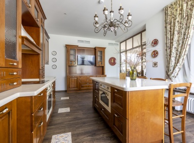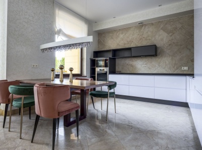 Продажа загородного дома общей площадью 600 кв.м. Коттеджный поселок Монтевиль. Новорижское шоссе, 24 км от МКАД. Фасад дома с большими окнами выполнен в современном стиле и облицован белой штукатуркой. В отделке лаконичного интерьера использованы молочные оттенки и фактура дерева и камня. Планировкой коттеджа предусмотрены 4 спальни, гостиная с камином и парадной столовой, кухня-столовая с камином и гараж на 2 машины. В свободной комнате можно обустроить домашний кинотеатр, а на эксплуатируемой кровле зону отдыха на свежем воздухе.