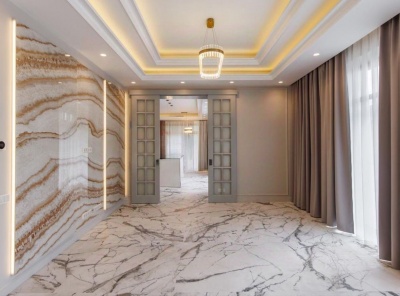 Продажа загородного дома общей площадью 540 кв.м. Коттеджный поселок Миллениум Парк. Новорижское шоссе, 19 км от МКАД. Коттедж построен в 2 этажа, под ключ с мебелью. Интерьер дома имеет изысканный дизайн, созданный с использованием высококачественных отделочных материалов, таких как мрамор, оникс, керамогранит, инженерная доска и лакокрасочные материалы от известных премиальных брендов. Это создает элегантную и роскошную атмосферу внутри дома. Фасад коттеджа отделан натуральным камнем. Участок 25 соток имеет правильную форму.