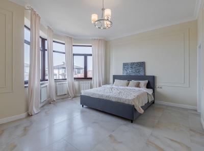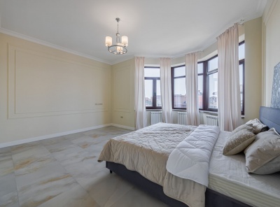 Аренда загородного дома общей площадью 397 кв.м. Коттеджный поселок Миллениум парк. Новорижское шоссе, 19 км от МКАД. Коттедж построен в 2 этажа. Отделка в классическом стиле. Полностью готов к проживанию, с мебелью. Участок 25 соток в готовой части поселка.Планировка:1 этаж - прихожая, гардеробная, с/у, спальня, кухня-столовая, гостиная с выходом на участок и вторым светом, котельная, гараж на 2 машиноместа2 этаж - хозяйская спальня с с/у и балконом, 2 спальни с балконами, кабинет, с/у, постирочная, гардеробная.