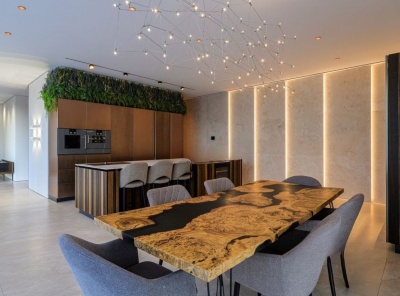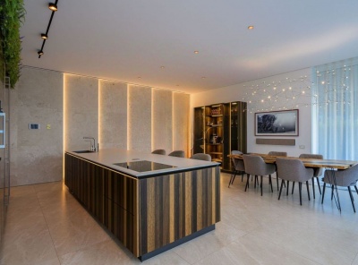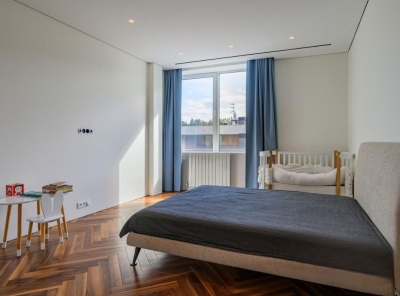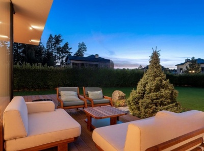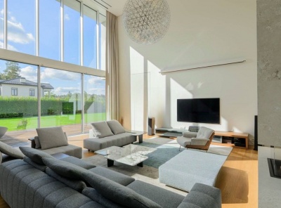 Продажа загородного дома общей площадью 525 кв.м. Новорижское шоссе, 18 км от МКАД. Коттеджный поселок Ренессанс Парк. Современный дом с панорамным остеклением, высокими потолками 3 метра и вторым светом 6,5 метров. Полностью меблирован и готов к проживанию. Фасад отделан крупноформатным керамогранитом Laminam и эластичной штукатуркой Oikos. Кровля ПВХ мембрана. Оконные системы Reynaers, в том числе моторизированная раздвижная система HiFinity в гостиной и кухне. Терраса выложена доской Millboard.