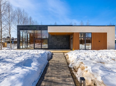 Продажа загородного дома площадью 250 кв.м. Новорижское шоссе, 24 км от МКАД. Коттеджный поселок Монтевиль. Одноэтажный проект построен из кирпича. Фасад отделан камнем с элементами массива лиственницы. Проект предлагается без внутренней отделки с возможностью доведения под ключ и бесплатной разработкой дизайн проекта под Ваш вкус. На участке 10 соток есть возможность разместить гараж и спа-комплекс.