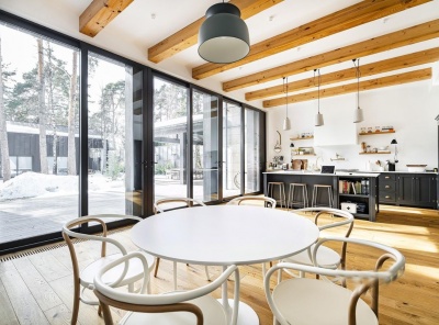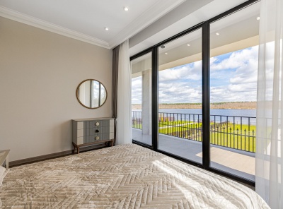 Продажа загородного дома площадью 370 кв.м. коттеджный поселок Чистые пруды. Новорижское шоссе, 14 км от МКАД. В доме выполнено панорамное остекление и открывается незабываемый вид на большую воду озер. У дома есть прямой выход к озеру и собственный пирс. Дом построен в современном стиле из высококачественных материалов. Стильный интерьер исполнен в спокойных тонах. В доме большая площадь остекления и высокие потолки, что наполняет внутреннее пространство воздухом. Из-за панорамного освещения в доме много солнечного света в течение дня.