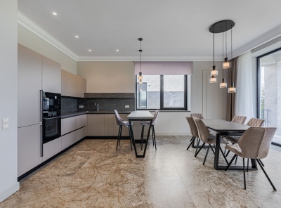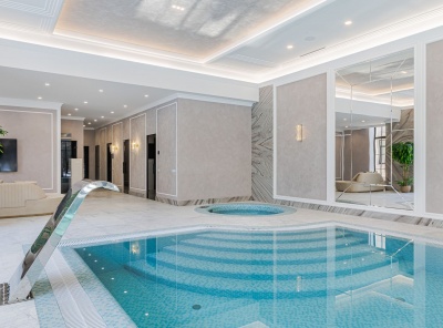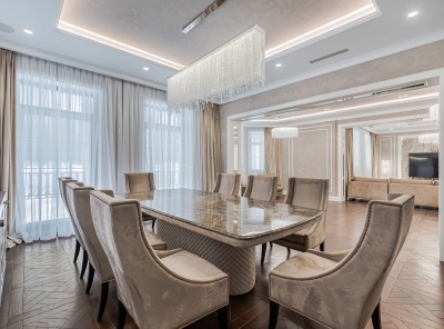 Продажа загородной резиденции у леса общей площадью 860 кв.м. Новорижское шоссе, 23 км от МКАД. Коттеджный поселок Риверсайд. Дом построен в 2 этажа из кирпича. Отделка выполнена с применением самых дорогих материалов. Натуральный мрамор и дубовый паркет, оникс, гипсовая лепнина, венецианская штукатурка. Роскошный интерьер исполнен в светлых тонах, дополнен стильной мебелью и изысканными предметами декора. Функциональная кухня укомплектована встроенной современной техникой Gaggenau.