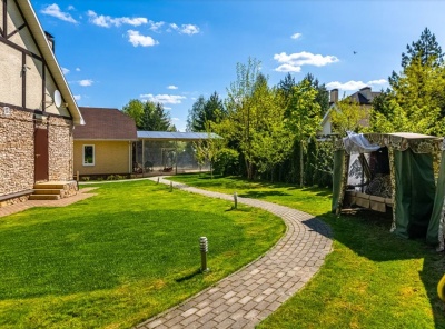 Продажа загородного дома в стиле фахверк общей площадью 420 кв.м. Коттеджный поселок АртЭко. Новорижское шоссе, 32 км от МКАД. Дом построен в 2 этажа. Построен по немецкой технологии Huf Haus с современными инженерными системами. Фасад выполнен из стекла и дерева. Коттедж расположен на прилесном участке 35 соток с панорамными видами в лес. Гараж на 2 м/м с подсобными помещениями. Также на участке расположено двухэтажное строение площадью 50 кв.м хозяйственного назначения.