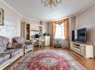Продажа 4-комнатной квартиры площадью 162 кв.м. Метро Университет, 1 минута пешком. Ломоносовский проспект, дом 25к1. ЖК Доминион. Квартира полностью меблирована . Кухня оборудована современной бытовой техникой. Санузел оборудован качественной европейской сантехникой. Теплая элегантная атмосфера. Ремонт выполнен из высококачественных и экологичных материалов. Светлые, ненавязчивые тона, разноуровневое освещение. Окна выходят во двор и на улицу.Планировка: кухня-гостиная, 2 спальни со своим санузлом, детская, постирочная, гостевой санузел.