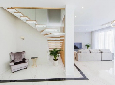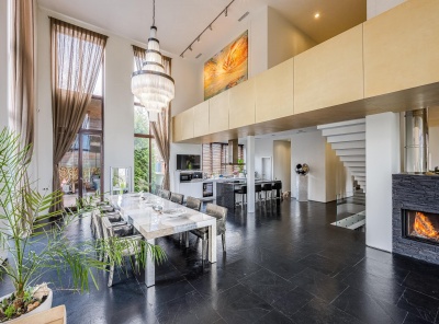 Продажа загородного дома площадью 260 кв.м. Новорижское шоссе, 23 км от МКАД. Коттеджный поселок Новорижский. Дом построен в 2 этажа из кирпича в стиле Хайтек, что придает ему современный и эстетичный вид. Интерьер дома выполнен в современном минималистичном стиле, что создает ощущение простора и функциональности. Панорамное остекление обеспечивает прекрасное естественное освещение дома и открывает прекрасные вид. В доме установлена техника от известных премиальных брендов, что гарантирует высокое качество и комфорт использования.