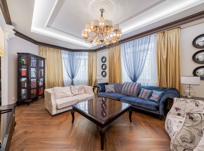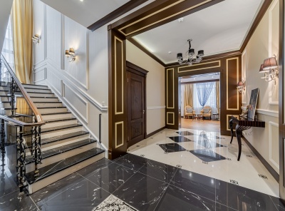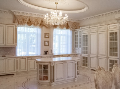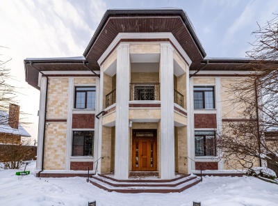 Продажа загородного особняка площадью 600 кв.м. Новорижское шоссе, 9 км от МКАД. Коттеджный поселок Никольская Слобода. Коттедж построен в 3 уровня в классическом стиле. Под ключ. Высококачественные материалы и передовые технологии, кирпично-монолитная конструкция, фасад выполнен декоративной штукатуркой Бауколор, фартук и лестница выполнены натуральным мрамором, кровля – медь.