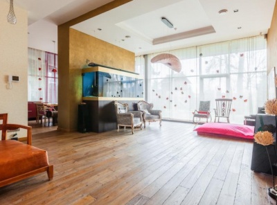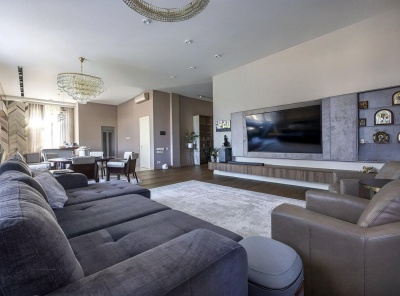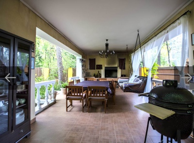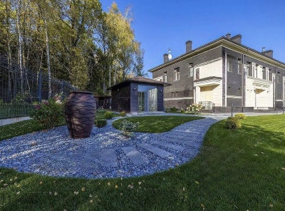 Продажа роскошной резиденции площадью 1450 кв.м. Новорижское шоссе, 9 км от МКАД. Коттеджный поселок Третья Охота. Дом построен под ключ в 2 этажа по индивидуальному проекту. Архитектор Рафаэль Шафир. Общая площадь зданий составляет 2000 кв.м. На участке 108 соток находится четыре строения с выходом в сосновый лес и на набережную реки Липка. Основной дом имеет площадь 1450 кв.м., а также два гостевых дома площадью 350 кв.м. и 200 кв.м. и гараж на 2 м/м с квартирой для персонала.