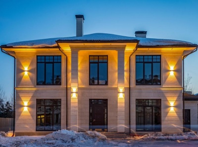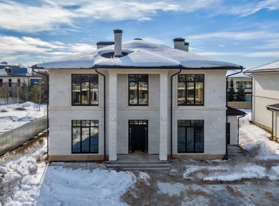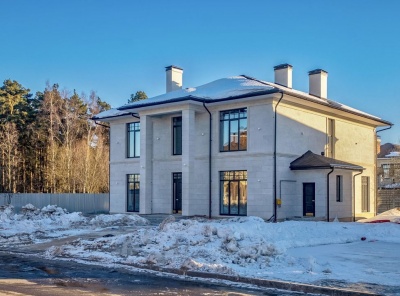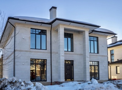 Продажа загородного дома площадью 440 кв.м. Новорижское шоссе, 12 км. Коттеджный поселок Прозорово. Дом построен в 2 уровня, под чистовую отделку с использованием передовых материалов высокого качества. В доме просторные комнаты с окнами в пол, высокие потолки 3,70 м. Фундамент армированная плита, стены - тёплая керамика (тёплый раствор), окна деревянные (лиственница). Входная дверь выполнена по индивидуальному проекту с использованием в отделке натурального дерева. Облицовка фасада из природного камня (мраморированный известняк).