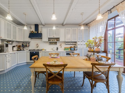 Аренда загородного коттеджа площадью 850кв.м. Новорижское шоссе 14 км от МКАД. Коттеджный посёлок Александровка. Просторный и уютный дом площадью в классическом английском стиле. Интерьер оформлен в теплых оттенках, установлена мебель и техника от ведущих производителей. В 2015 году выполнен внутренний косметический ремонт, в 2019 выполнен косметический ремонт фасада.