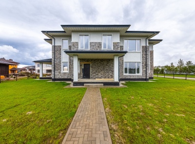 Продажа загородного дома площадью 375 кв.м. Новорижское шоссе, 23 км от МКАД. Коттеджный поселок Новорижский. Современный проект в построен в 2 этажа по индивидуальному проекту. Внутренняя отделка помещений выполнена в современном стиле с использованием качественных материалов. Большие окна наполняют дом естественным светом. Теплые полы уложены по всему первому этажу на втором этаже в с/у. Дом расположен на солнечном участке 12.25 соток правильной формы. Все коммуникации центральные. Срок окончания работ конец мая.